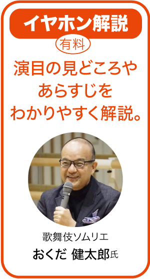 今回加子母歌舞伎初登場のイヤホン解説で、もっと歌舞伎を楽しんでください。